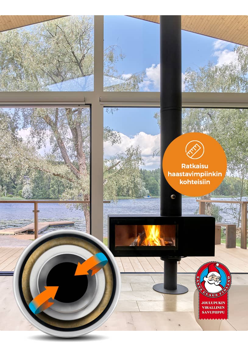 Pienimmät ulkohalkaisijat, eleetön muotoilu ja kattavin värivalikoima. Siro-savupiippu sopii joka tilaan ja tulisijaan.